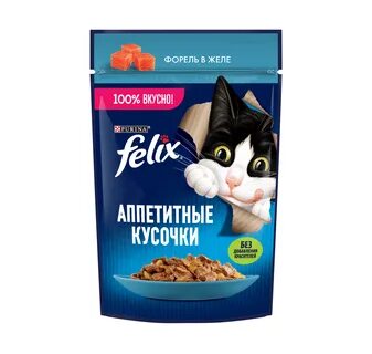 Felix Аппетитные кусочки для кошек (форель в желе) - влажный корм для кошек с привлекательным ароматом и вкусом. Продукт содержит необходимые компоненты для здоровья и активной жизнедеятельности животных. Преимущества: - клетчатка в составе поддерживает нормальную работу ЖКТ; - корм обогащен полезными микроэлементами, которые особенно важны для котов, не выходящих на улицу; - витамин D3 обеспечивает здоровье костей и суставов.