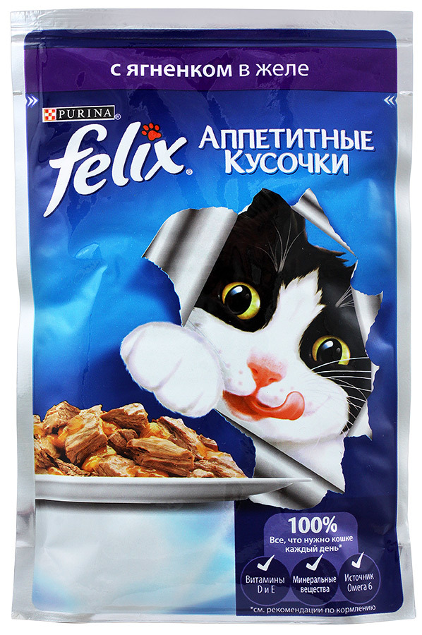 Felix Аппетитные кусочки для кошек (ягненок в желе) - влажный корм для кошек с привлекательным ароматом и вкусом. Продукт содержит необходимые компоненты для здоровья и активной жизнедеятельности животных. Преимущества: - клетчатка в составе поддерживает нормальную работу ЖКТ; - корм обогащен полезными микроэлементами, которые особенно важны для котов, не выходящих на улицу; - витамин D3 обеспечивает здоровье костей и суставов.