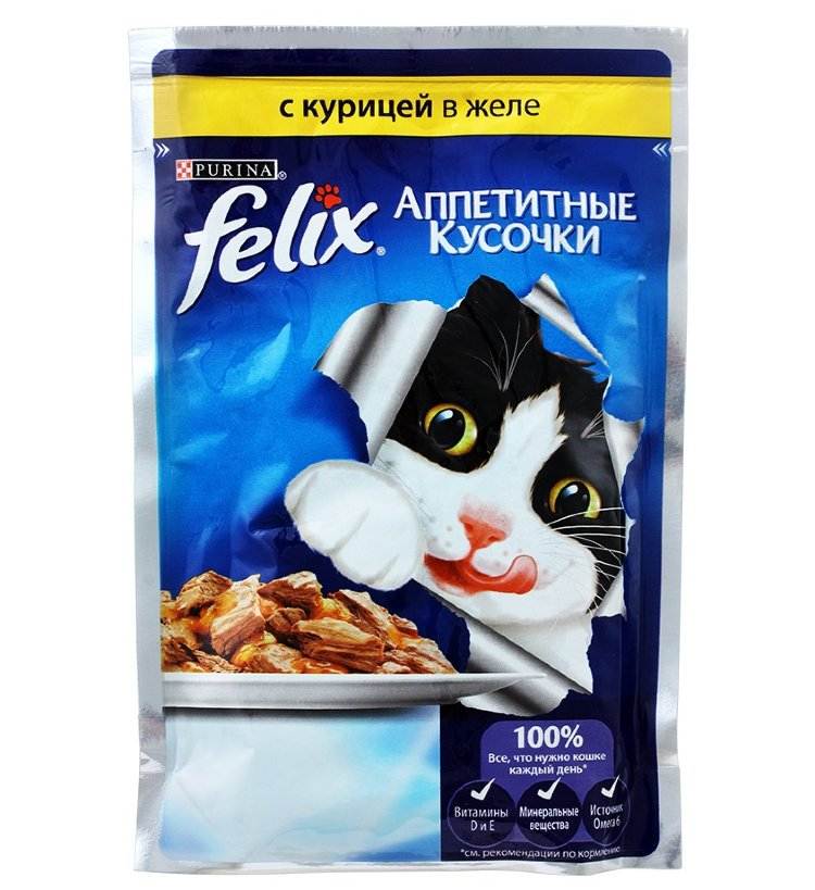 Felix Аппетитные кусочки для кошек (курицей в желе) - влажный корм для кошек с привлекательным ароматом и вкусом. Продукт содержит необходимые компоненты для здоровья и активной жизнедеятельности животных. Преимущества: - клетчатка в составе поддерживает нормальную работу ЖКТ; - корм обогащен полезными микроэлементами, которые особенно важны для котов, не выходящих на улицу; - витамин D3 обеспечивает здоровье костей и суставов.