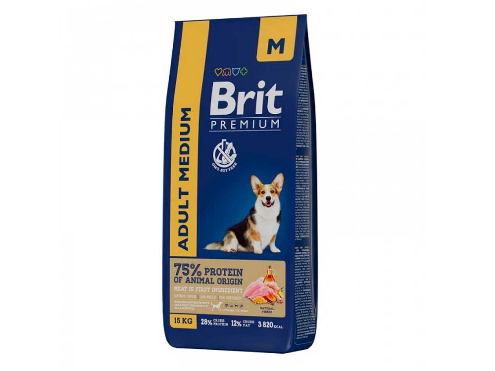 Brit Premium Dog Adult Medium (Курица) - полнорационный сухой корм с курицей для взрослых собак средних пород (10-25 кг).