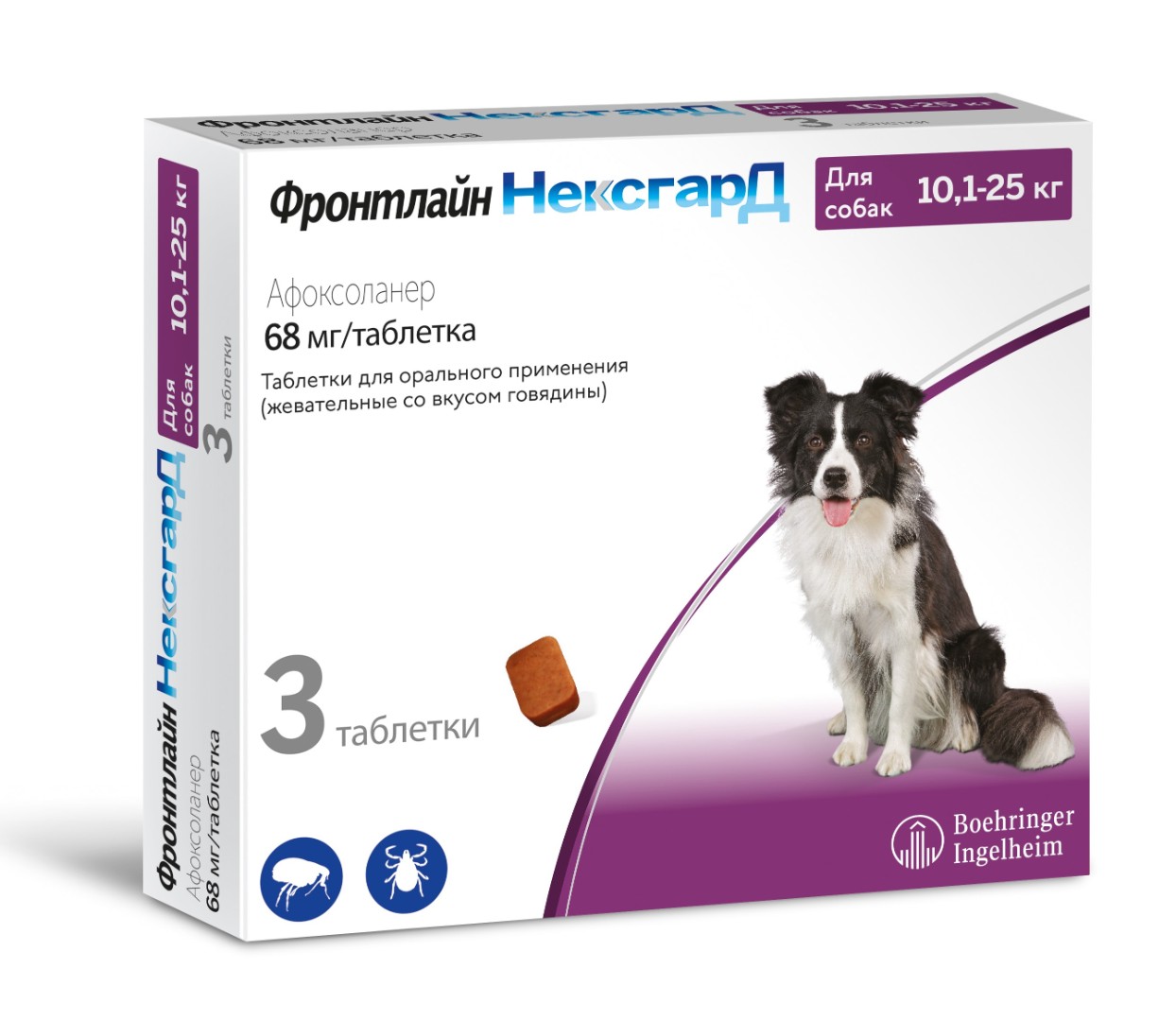 Boehringer Ingelheim НексГард - инсекто-акарицидный препарат в виде жевательных таблеток, который используется для профилактики и лечения собак при поражениях эктопаразитами, а также для профилактики поражения клещами.